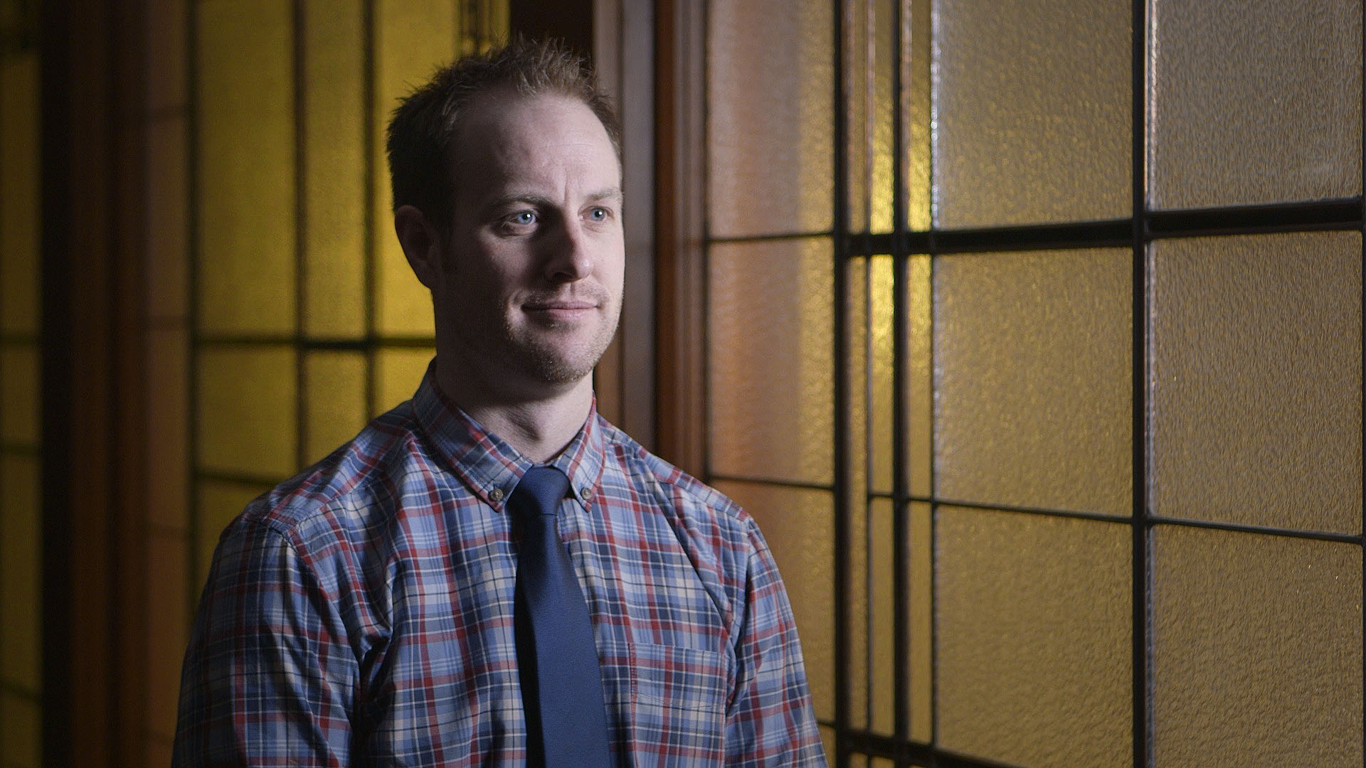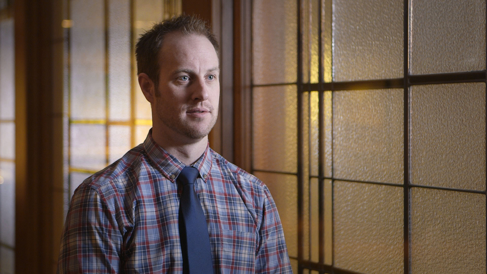 In order to create separation from the background, and also, just a naturally pretty shot, “checker-boarding” is a classic technique I use whenever possible. Notice how dark sections of the background are juxtaposed directly against lighter parts of the foreground — in this case, the interviewee.